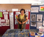 LAS Ghana – Member of staff representing Ghana with information and Ghanaian fayre