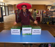On Wednesday all students and staff were invited to come to school in international mufti. We saw people in kilts, salwar kameez, rugby tops, berets and myriad cultural symbols. Everyone paid a pound to charity and an impressive total of £1,213 was raised. The money was divided by vote: £643 to UNICEF, £400 to Red Cross/Red Crescent and £170 to Amnesty international.
